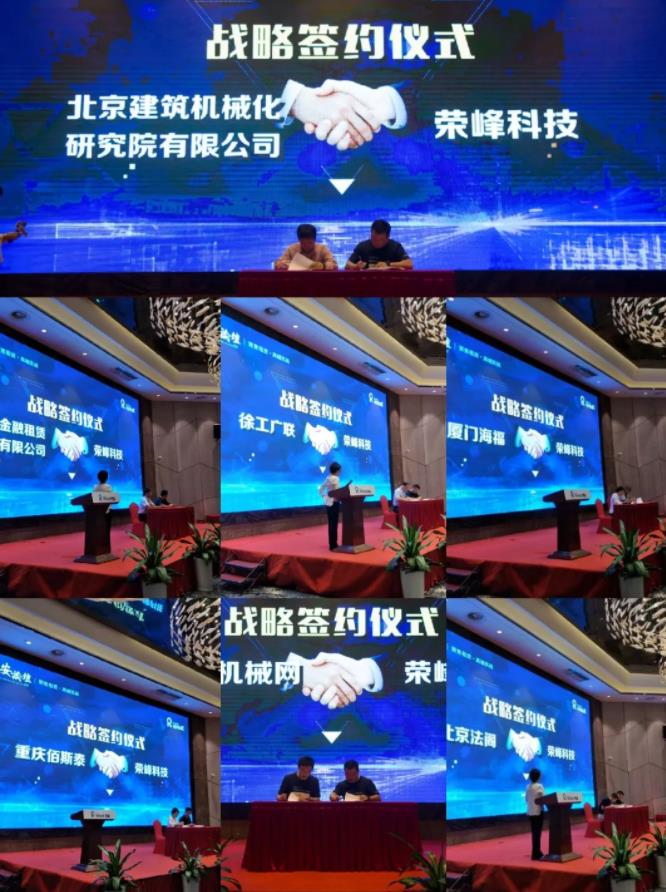 同時(shí),此次會(huì)議上還舉行了“資源賦能”戰(zhàn)略簽約儀式,榮峰科技與北京建筑機(jī)械化研究院、鐵甲工程機(jī)械網(wǎng)、華運(yùn)金融租賃股份有限公司、北京法閣、徐工廣聯(lián)、廈門海福、重慶佰斯泰簽訂戰(zhàn)略合作協(xié)議。