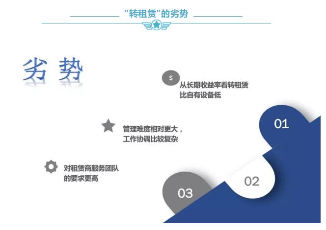 第一方面,從長期收益率看轉(zhuǎn)租賃比自有設(shè)備低,在企業(yè)業(yè)務(wù)擴(kuò)張期是個好辦法。