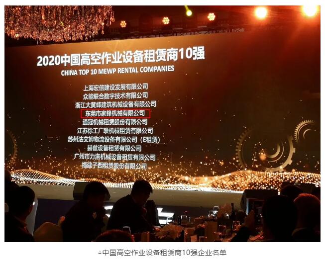 家鋒機械連續(xù)三年榮膺“中國高空作業(yè)設(shè)備租賃商10強”稱號,此次蟬聯(lián)是對家鋒機械實力的又一次全面肯定。