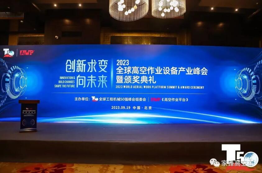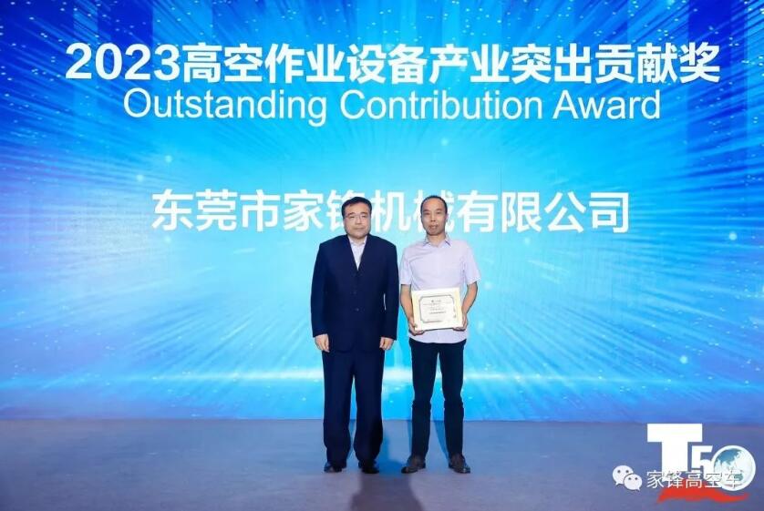 2023年9月19日,2023全球高空作業(yè)設備產業(yè)峰會暨頒獎典禮在北京成功舉辦。在這場全球盛會上,東莞家鋒憑借在國家的重大基礎設施和地標建筑項目中積極推廣高空作業(yè)設備,并為主流品牌高空作業(yè)機械產品的迭代創(chuàng)新做出貢獻,榮獲“2023高空作業(yè)設備產業(yè)突出貢獻獎”,董事長張惠清榮膺“2023租賃行業(yè)年度人物”。